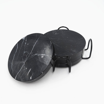 Đế Lót Ly Hình Tròn Màu Đen Cổ Điển, Đế Lót Ly Hình Đá, Đế Lót Ly Whisky, Có Giá Sắt